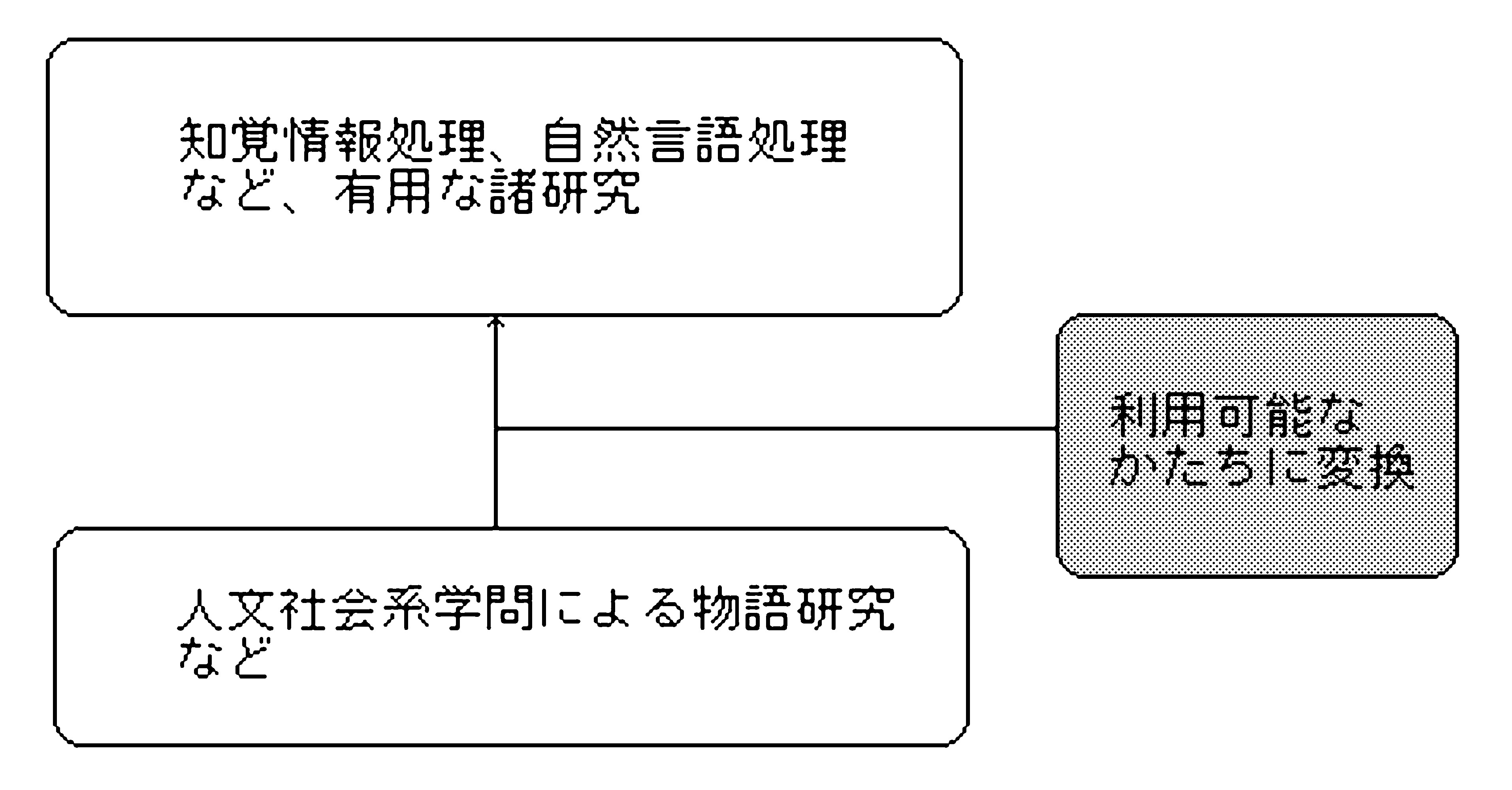 広告など、情報伝達を意図して作られた技術の産物(人工物)を研究することは、人間が理解しやすい情報提示のパターンを明らかにするうえで、大きな成果を挙げてきた。同じことは、文学・絵画・映画などの芸術作品の構造的研究についても言える。何から話しはじめれば聞く人を惹きつけられるのか、複数のエピソードをどのように並べれば最後まで興味を失わせずに済むのか、キャラクターをどう動かせば大きな盛り上がりが得られるのか、複数のキャラクターにどのような対話をさせれば複雑な筋立てを読者に要領よく理解させられるのか、何に注意すればお話しが自然な結末を迎えるのか…等々は、詩学、文学研究、美術研究、文化人類学、記号論、物語論、映画研究など、従来の人文社会系の学問が取り組み、成果を積み上げてきたことがらである。しかしその成果が記された文献は、他分野の研究者から見て、近寄り難い形式で書かれていることが多い。それでは、せっかくの成果や資産が台無しである。第一の研究テーマは、そうした資産を、他の研究分野の方々のご協力を仰ぎながら、より多くの人のために役立つかたちに変換していくことである。