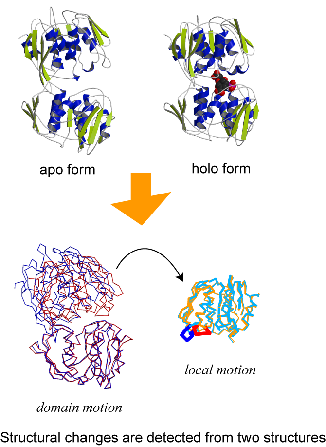 A protein folds into a structure and performs a function. However, since proteins are not static molecules, their structures change constantly. To grasp structural changes of various proteins and explore the relationships between the structural changes and protein functions, I have been developing a program to describe protein structural changes, classifying the structural changes and analyzing their functional annotations using Protein Data Bank (PDB), UniProt and other databases.