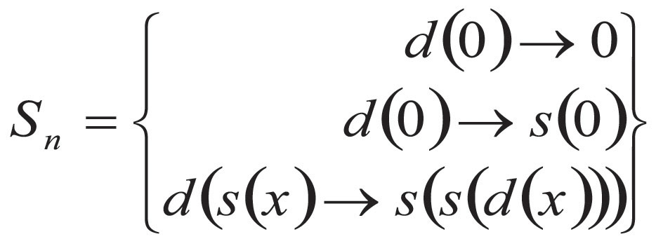 P0は自然数の2分の1を求める関数dのプログラム、S0は自然数の2倍を求める関数dの仕様である。このような仕様とプログラムの対(S0,P0)に変換ルールを適用するとSnとして