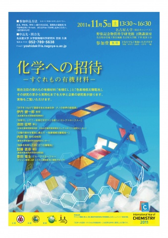 化学への招待「-すぐれもの有機材料-」を11月5日(土)に開催します。
