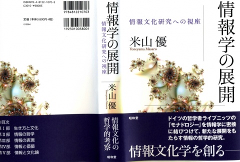 米山 優 著 『情報学の展開』 [副題] 情報文化研究への視座 [出版社] 昭和堂 [発行日] 2011年2月10日 [定価] 3,800円+税 [目次] 第I部 生き方と文化 第II部 情報の哲学 第III部 情報の表現 第IV部 情報と価値 第V部 情報学と文化論